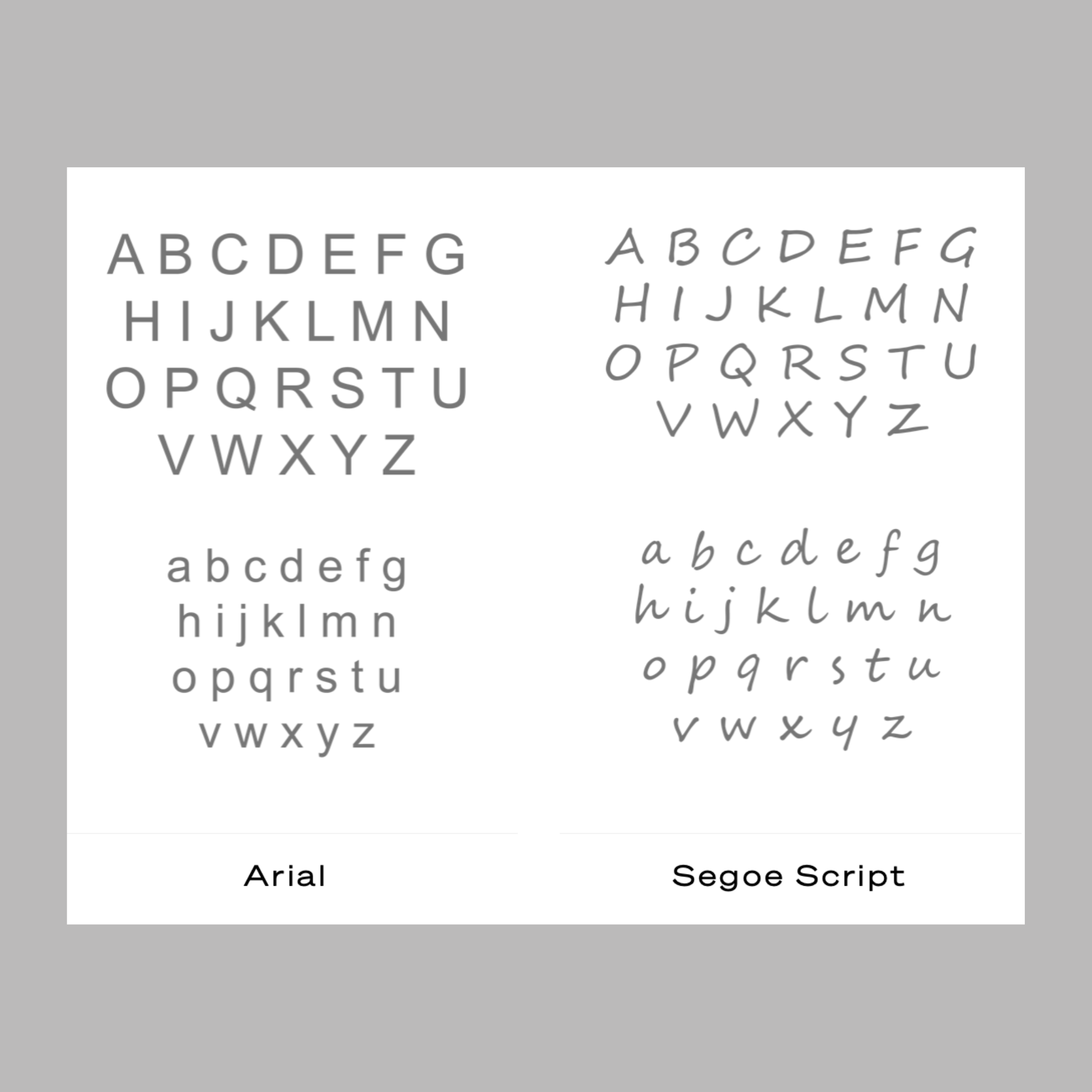 * Back engraving fonts: Basic / Segoe script